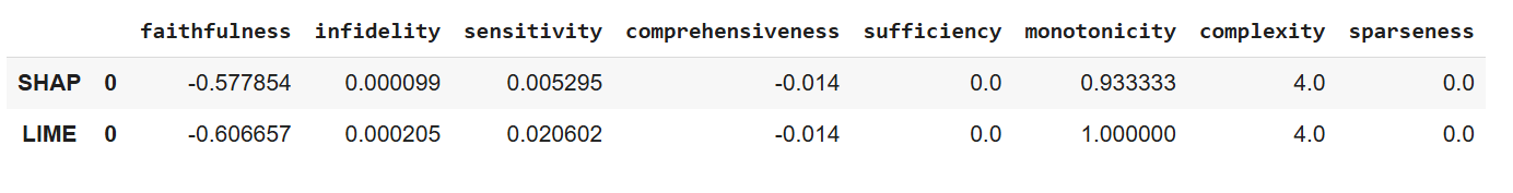 A high sufficiency score means that the top few features identified by the explanation are sufficient to replicate the model’s prediction. In other words, the model is highly dependent on a small subset of features—which can be useful for simplifying models or identifying critical decision factors.